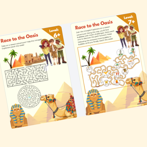 Puzzles, word searches, code-breaking challenges, colouring pages, and other fun activities inspired by Egypt.